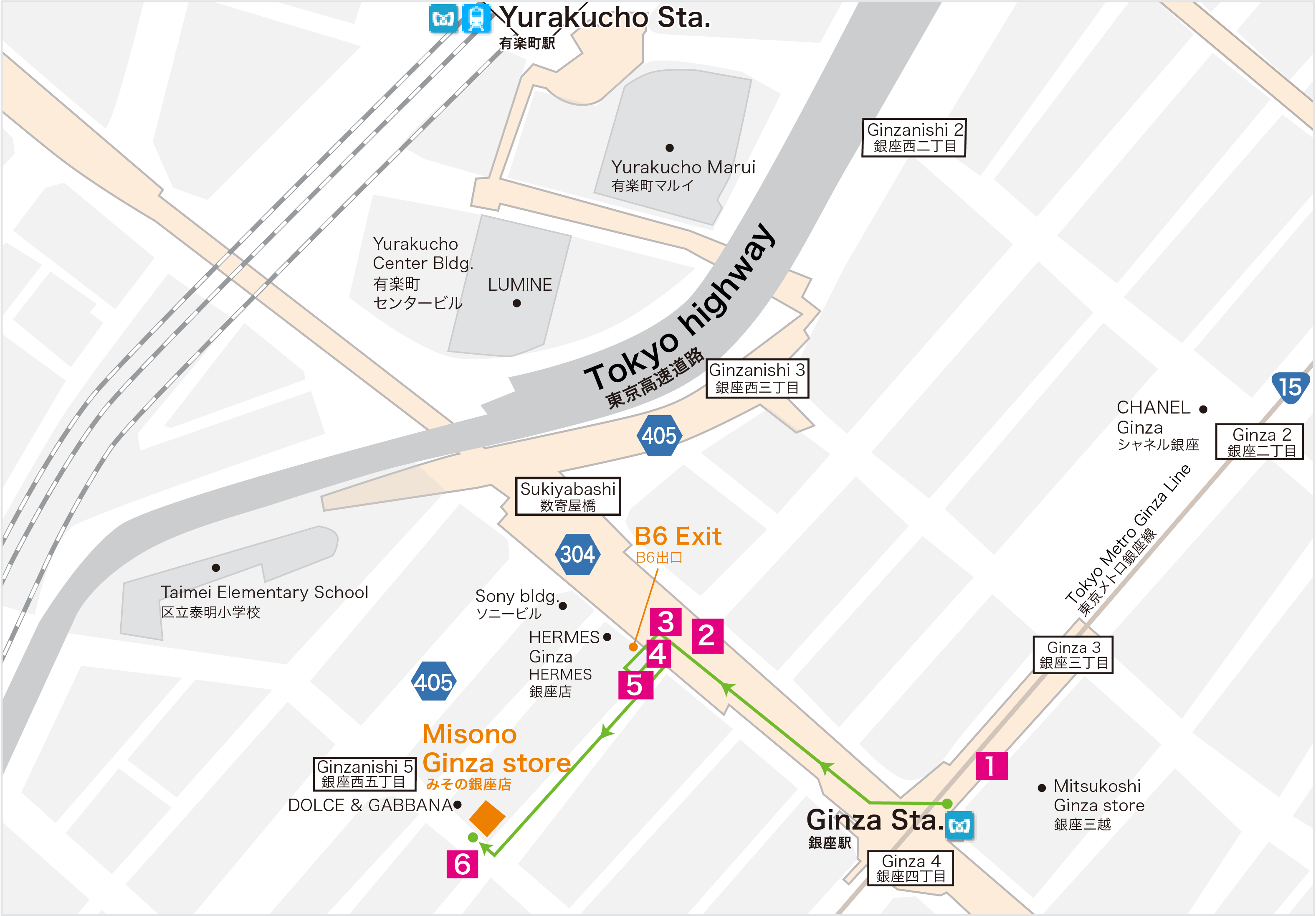 | Access | 2-min. walk from Exit B5 of Ginza sta. on subway Ginza line 5-min. walk from Ginza Exit of Yurakucho sta. on JR Yamanote line 5-min. walk from Higashiginza sta. on Toei Asakusa line 5-min. walk from Higashiginza sta. on subway Hibiya line |