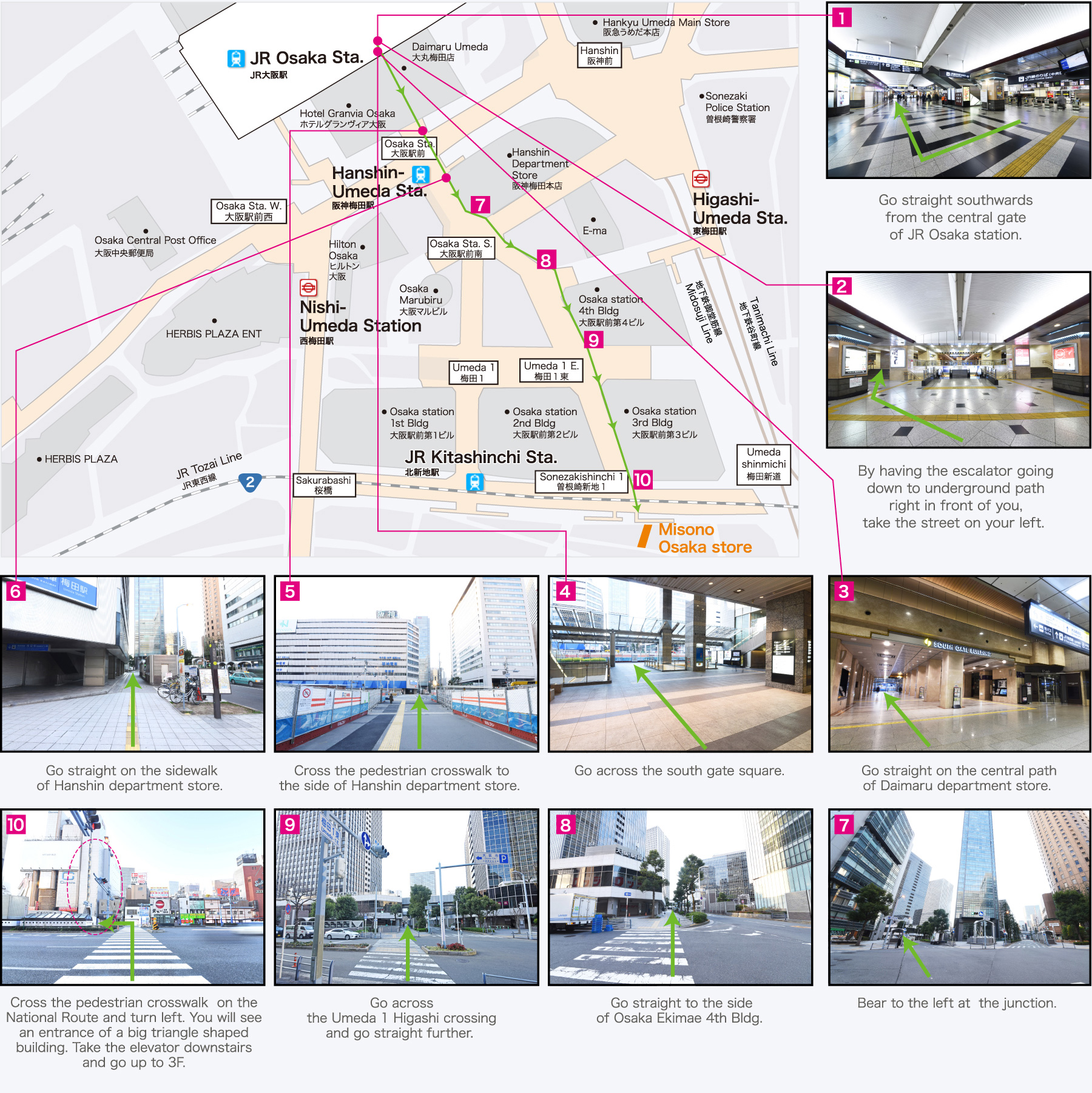 | Access | 1-min. walk from Exit 11 to 43 of Kitashinchi sta. on JR Tozai line 5-min. walk from Exit 9 of Higashiumeda sta. on subway Tanimachi line 5-min. walk from Exit D28 of Umeda sta. on Hanshin Electric Railway 8-min. walk from JR Osaka sta. |