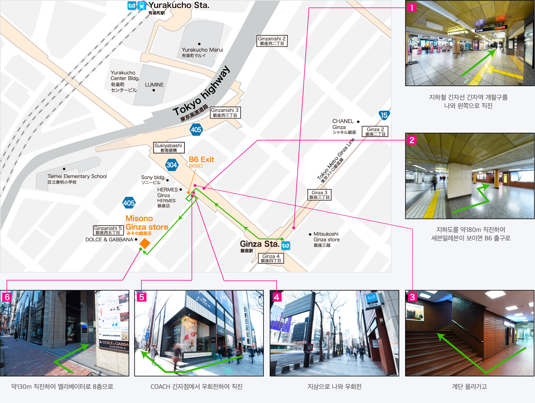 | 찾아오시는 길 | 지하철 긴자선 긴자역 B5번 출구에서 도보 2분 JR 야마노테선 유라쿠초역 긴자 출구에서 도보 5분 도에이 아사쿠사선 히가시긴자역에서 도보 5분 지하철 히비야선 히가시긴자역에서 도보 5분 |