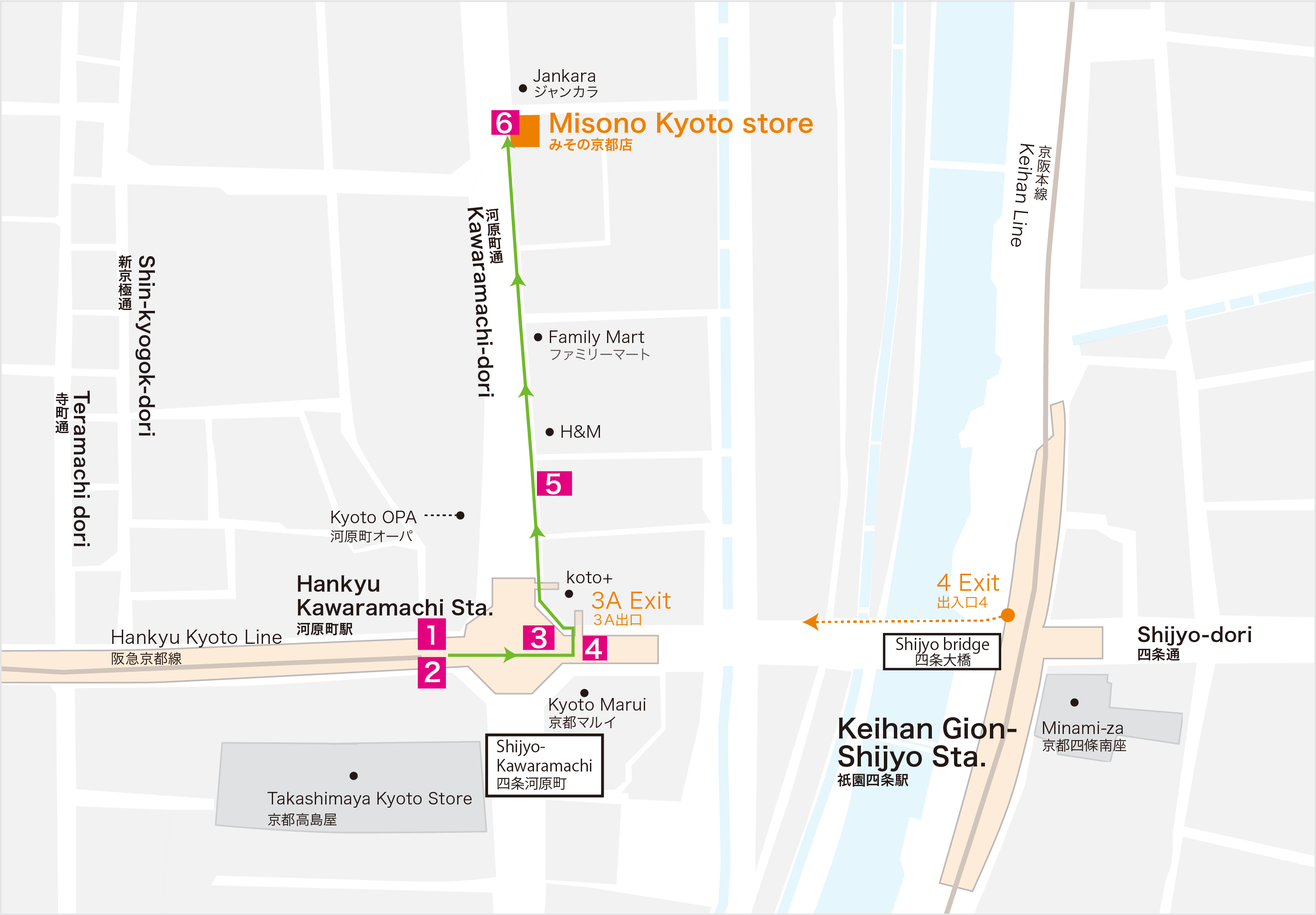 | 交通方式 | 阪急京都線河原町站 步行5分鐘 京阪本線三條站 步行10分鐘 京阪本線祇園四條站 步行10分鐘 |