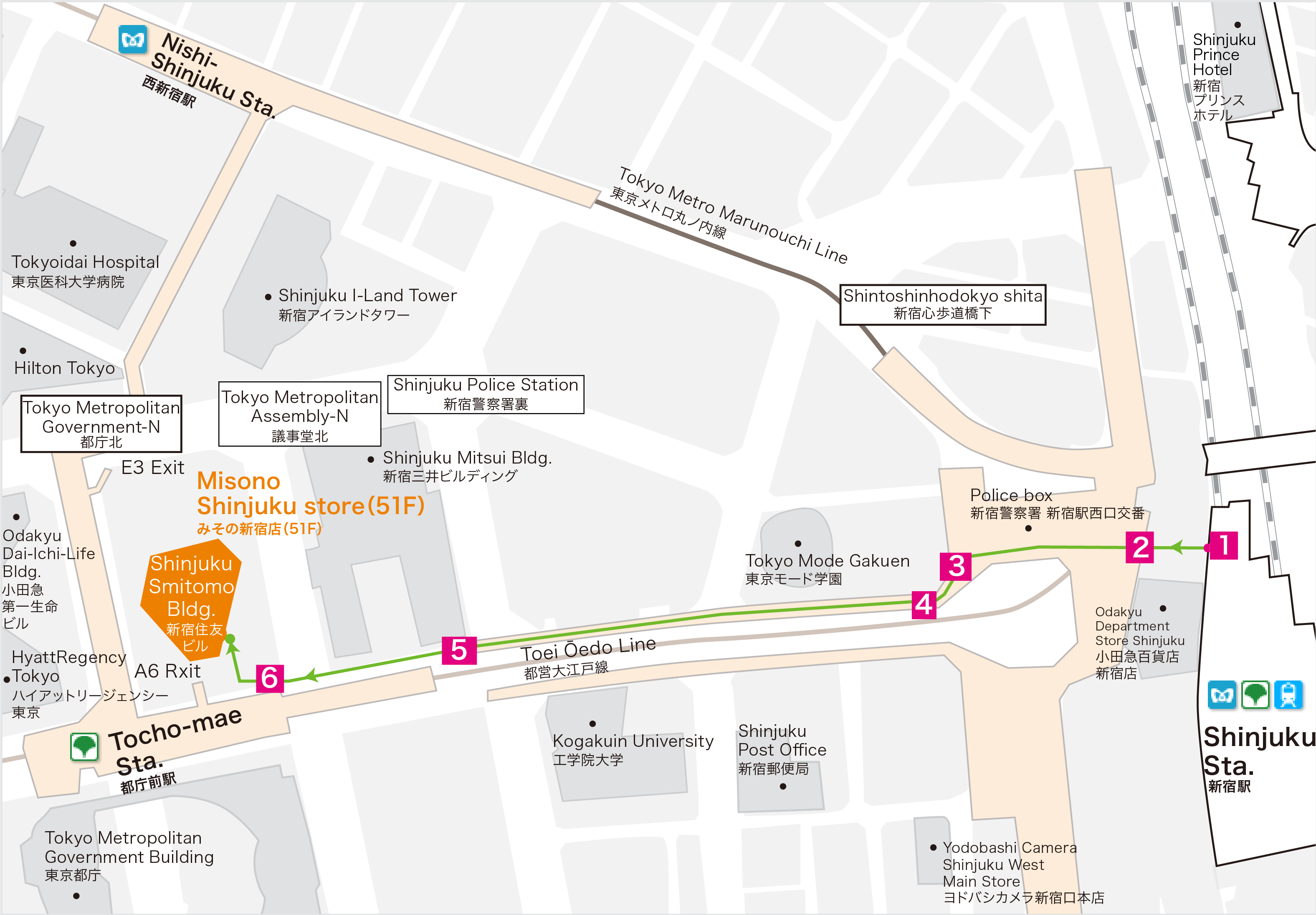 | 交通方式 | JR新宿站 西口 步行10分鐘 地下鐵都營大江戶線都廳站前 步行5分鐘 地下鐵丸之内線西新宿站 步行10分鐘 |